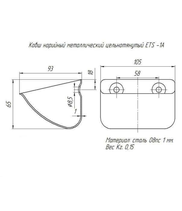 Ковш норийный металлический ETS-1А (105х93х65 мм)