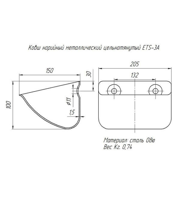 Ковш норийный металлический ETS-3А (205х150х100 мм)