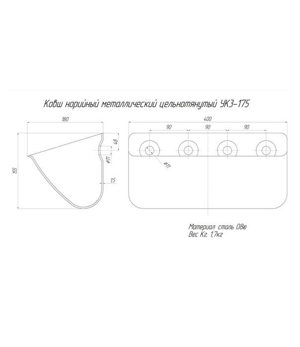 Ковш норийный металлический УКЗ-175 (400х180х155 мм)