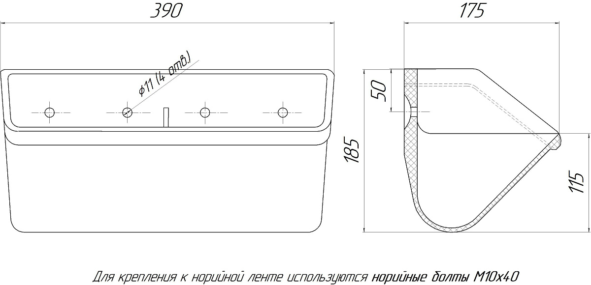 Ковш норийный полимерный МАСТУ 175 (390*185*175 мм)