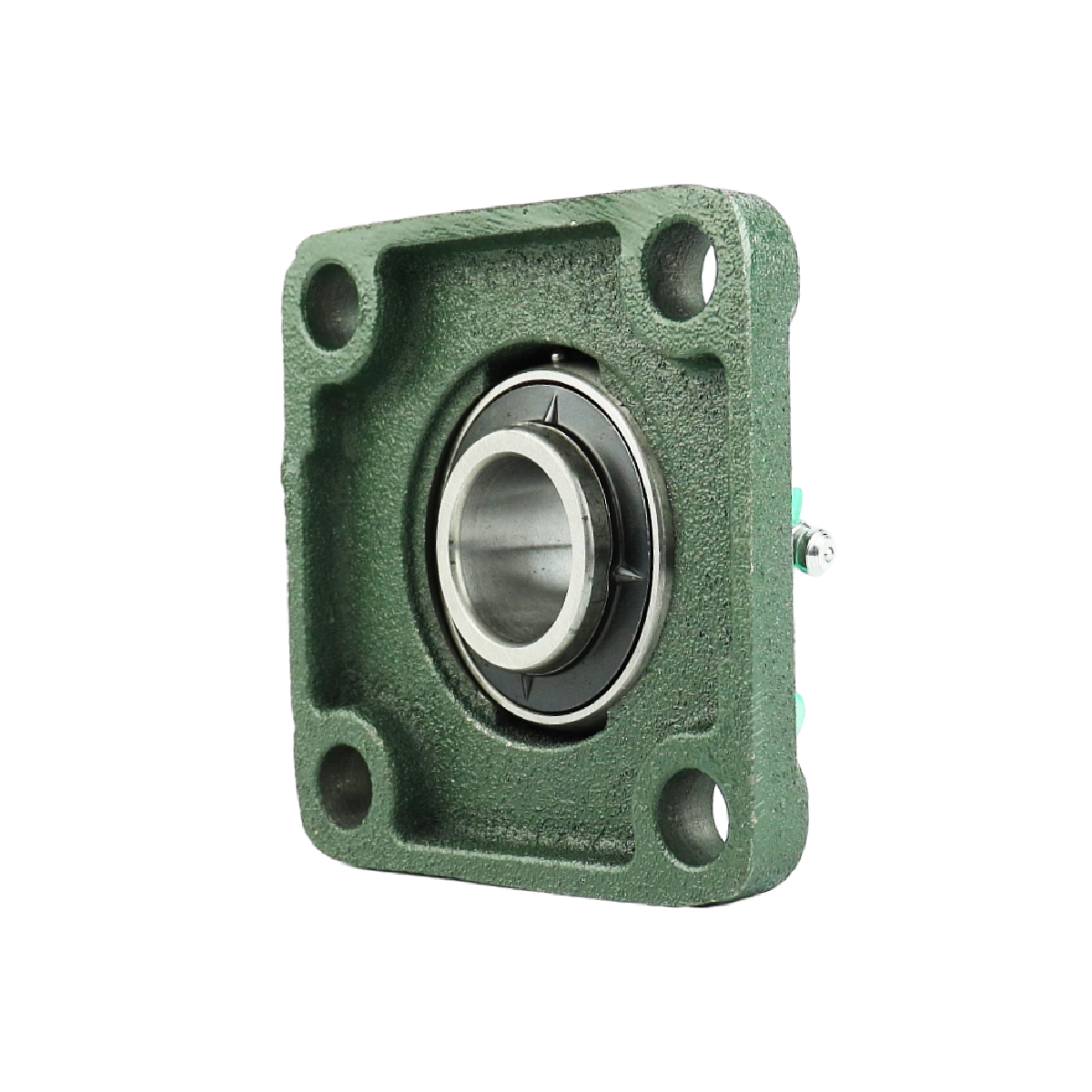 Подшипник корпусный шариковый радиальный однорядный с двумя уплотнениями с широким внутренним кольцом сферической наружной поверхностью наружного кольца с установочным винтом во внутреннем кольце. Направление воспринимаемых нагрузок - радиальное и осевое в обе стороны. Установлен в корпус F фланцевого типа.