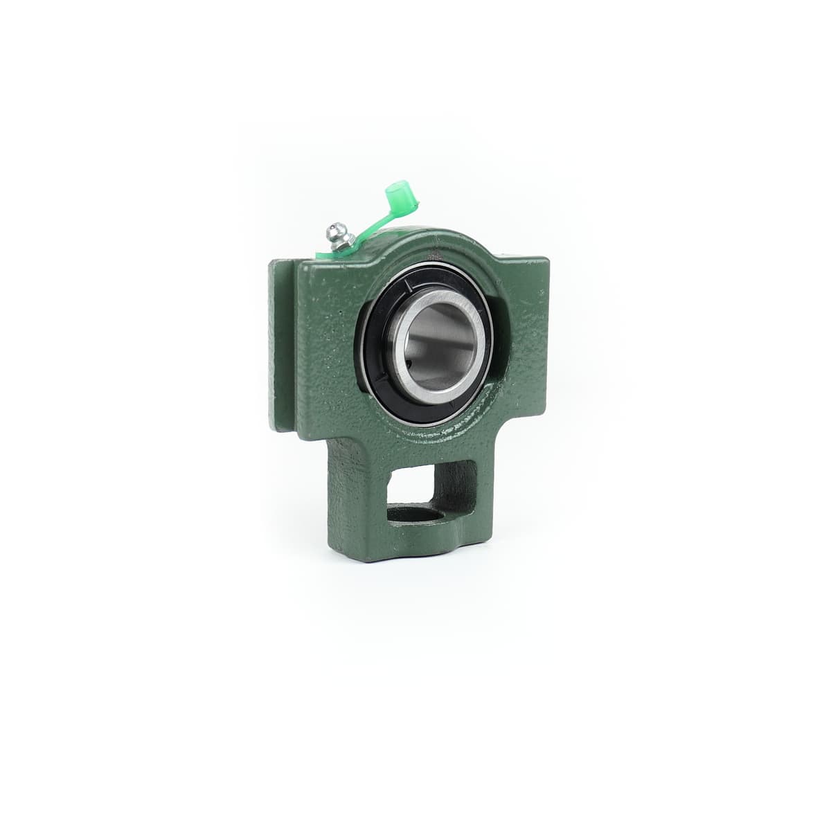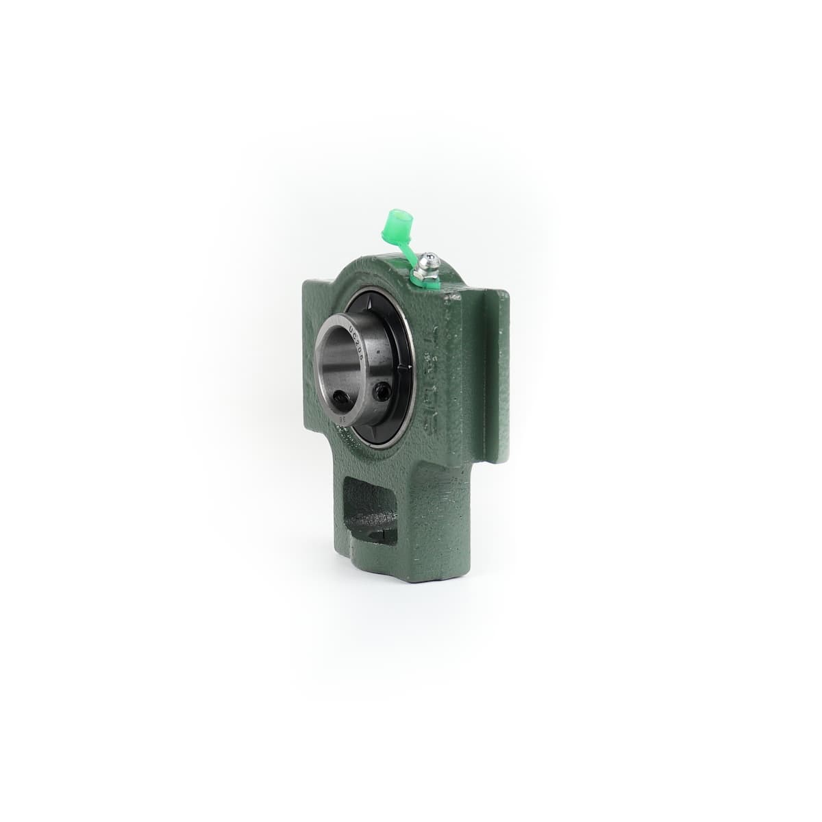 Подшипник корпусный шариковый радиальный однорядный с двумя уплотнениями с широким внутренним кольцом сферической наружной поверхностью наружного кольца с установочным винтом во внутреннем кольце. Направление воспринимаемых нагрузок - радиальное и осевое в обе стороны. Монтаж на валу удобен и прост. Установлен в корпус Т натяжного типа.