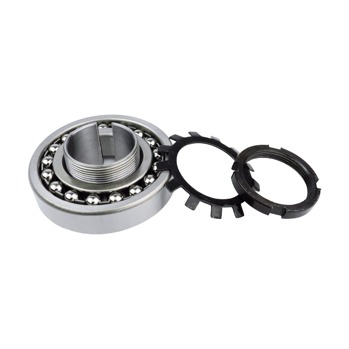 Направление воспринимаемых нагрузок - радиальное. Допускает значительные перекосы внутреннего кольца (вала) относительно наружного кольца (корпуса). Допускает регулировку радиального зазора и монтаж на гладких валах. В комплект подшипника входит закрепительная втулка H211.