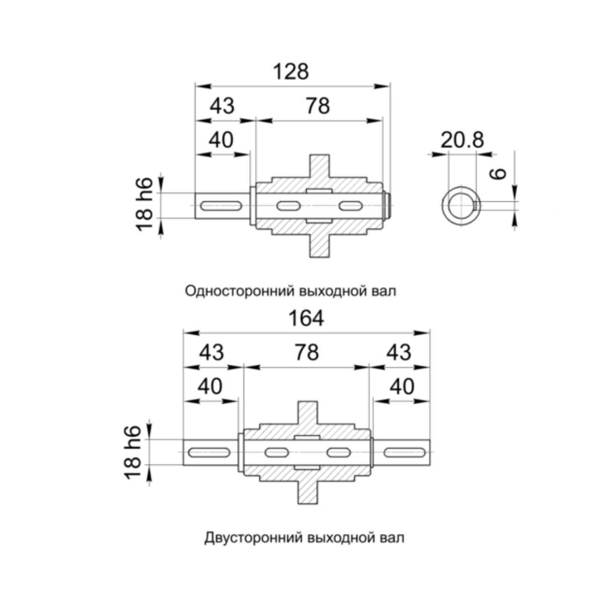 Выходной вал комплектуется стопорными кольцами и шпонками.