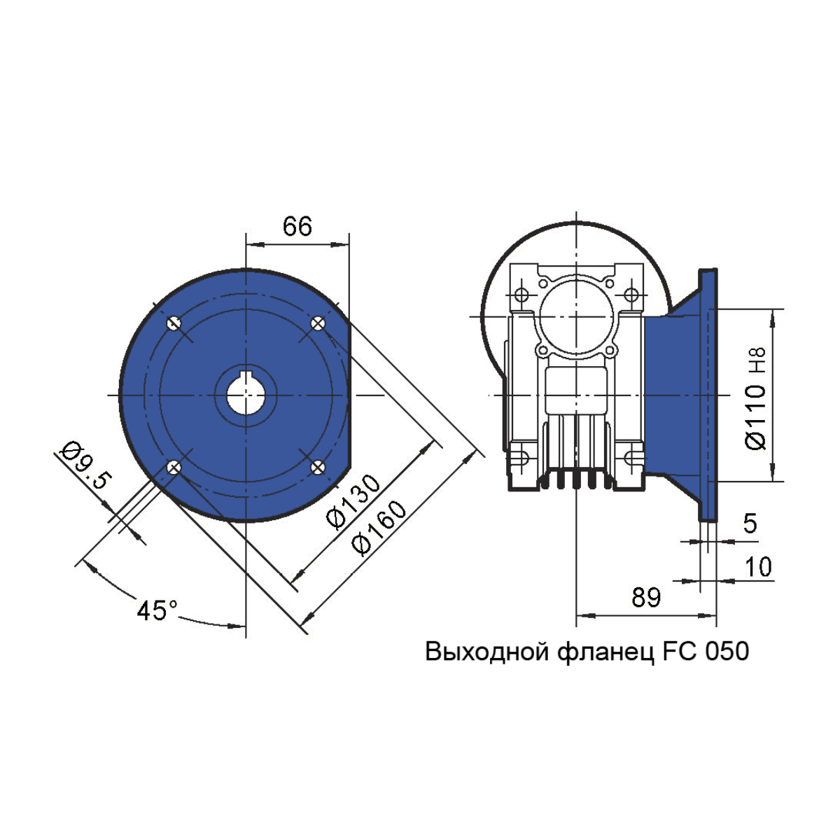 Выходной фланец служит для крепления редуктора к оборудованию, на котором используется привод.