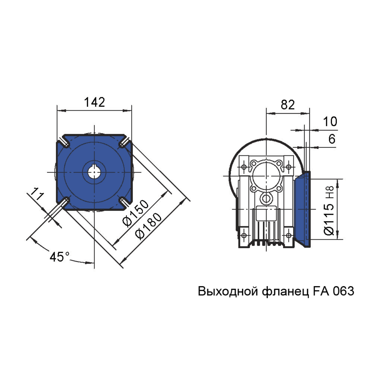 Выходной фланец служит для крепления редуктора к оборудованию, на котором используется привод.