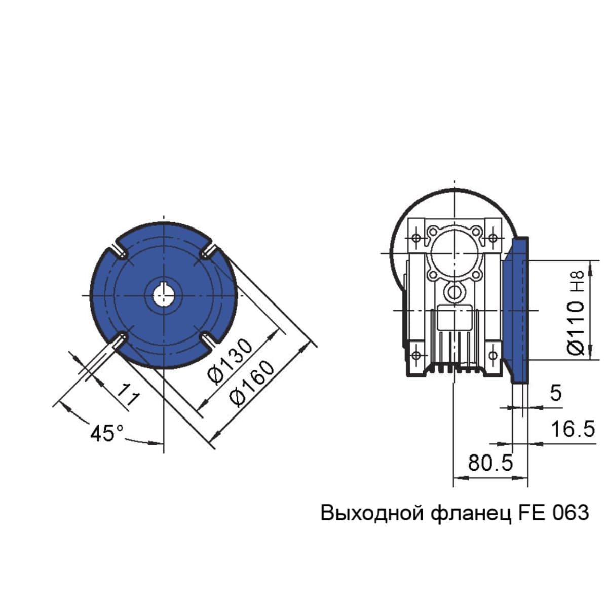 Выходной фланец служит для крепления редуктора к оборудованию, на котором используется привод.