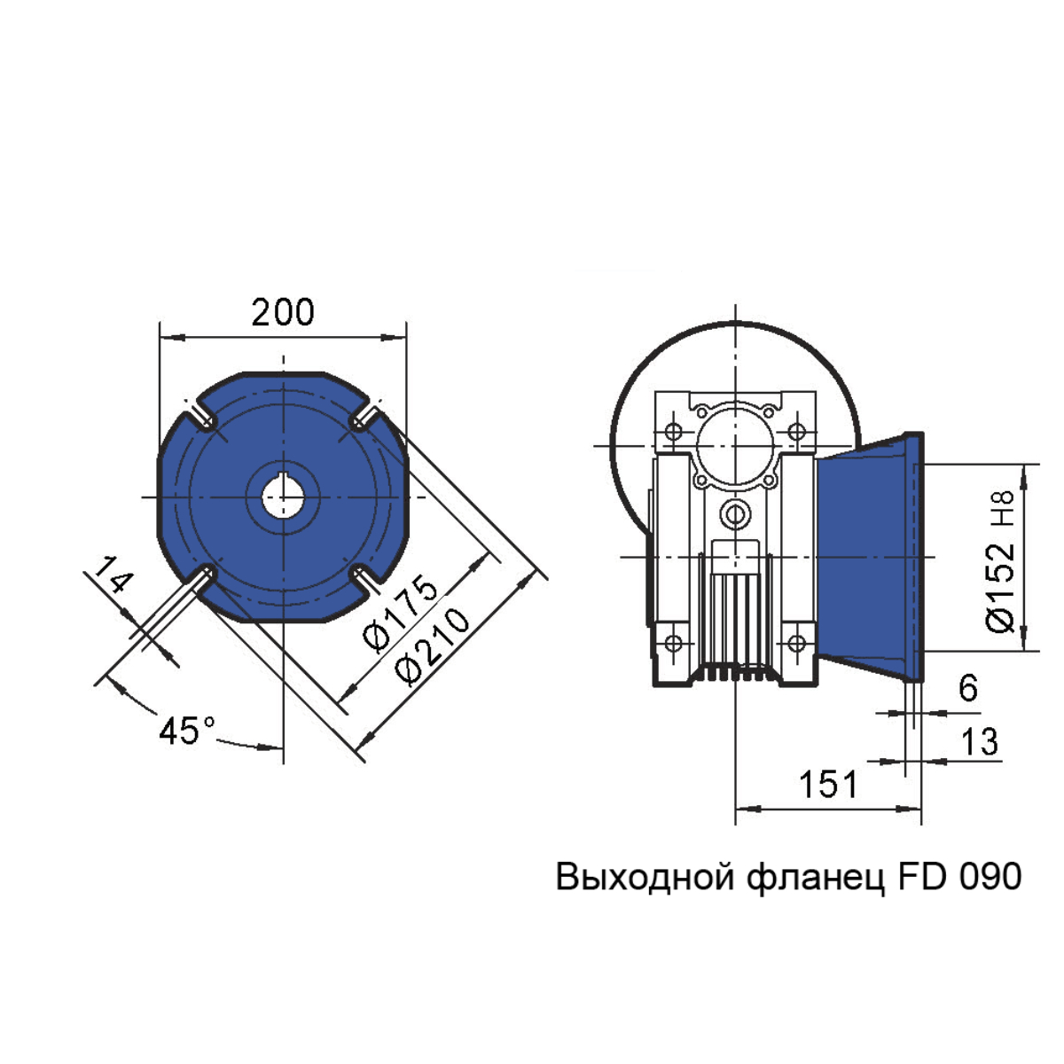 Выходной фланец служит для крепления редуктора к оборудованию, на котором используется привод.