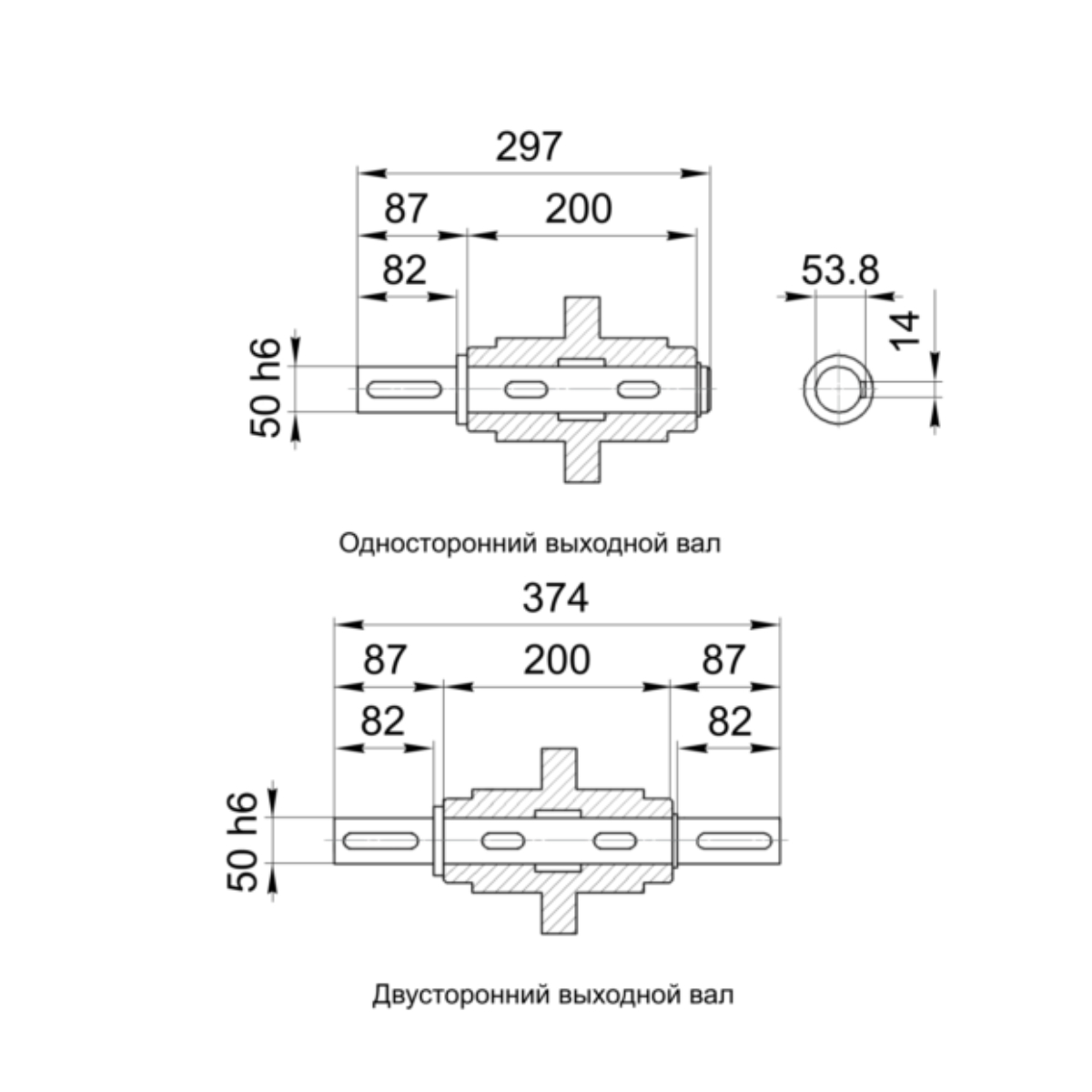Выходной вал комплектуется стопорными кольцами и шпонками.