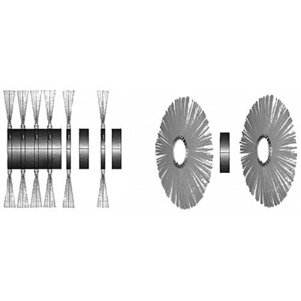 При сборке щёточного вала с дисками классического типа (с металлическим сердечником), обязательно требуется применять проставочные кольца, они устанавливаются между каждым щеточным диском. Проставки позволяют выдерживать требуемое расстояние непосредственно между щёточными дисками.