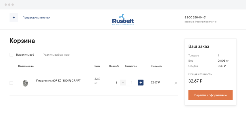 Внимательно проверьте заказ, если все верно – нажмите кнопку «Перейти к оформлению»