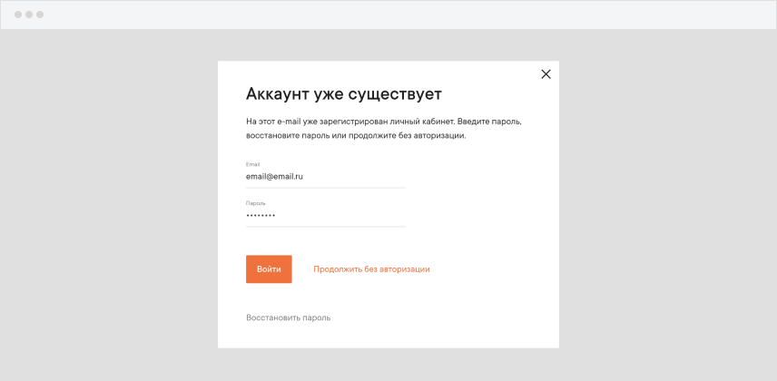 введенный e-mail, то появится информация, что у Вас уже есть личный кабинет.