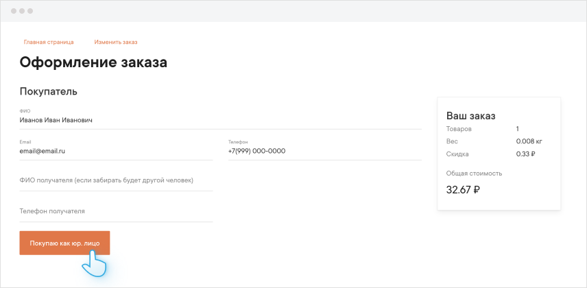 необходимо будет внести вручную нажав на кнопку “Покупаю как юр. лицо”.