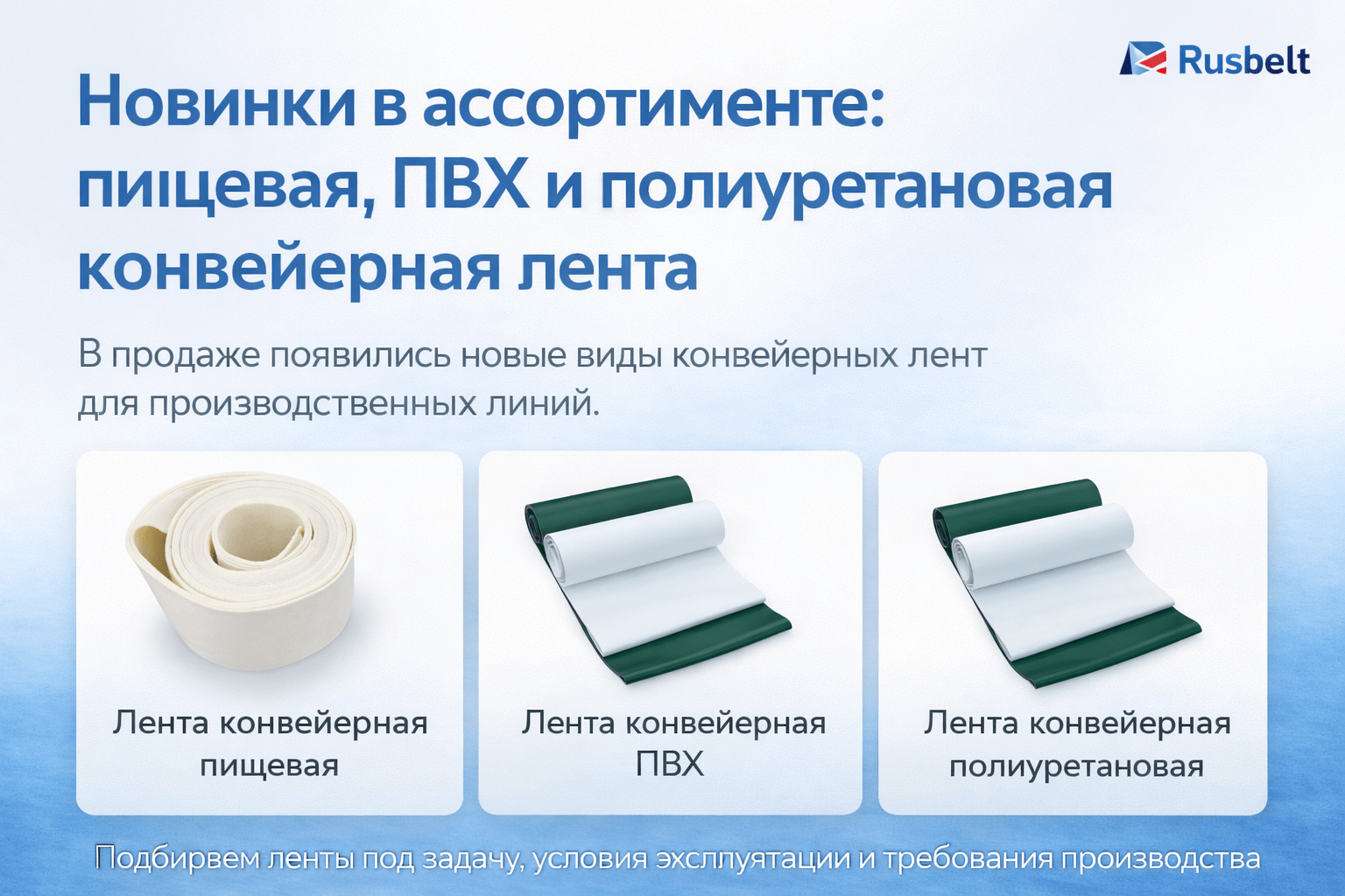 Новинки в ассортименте: пищевая, ПВХ и полиуретановая конвейерная лента
